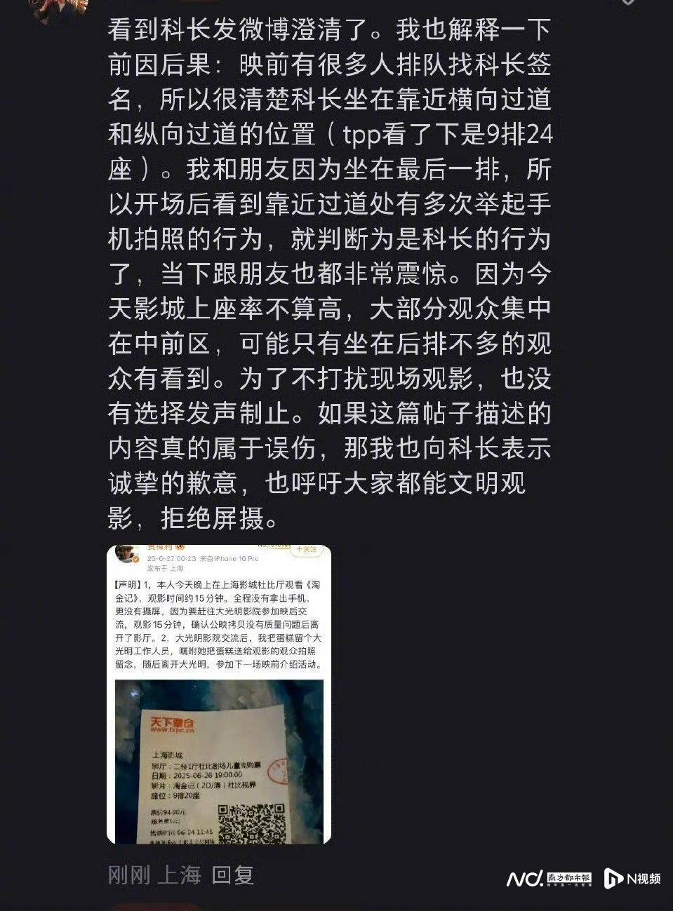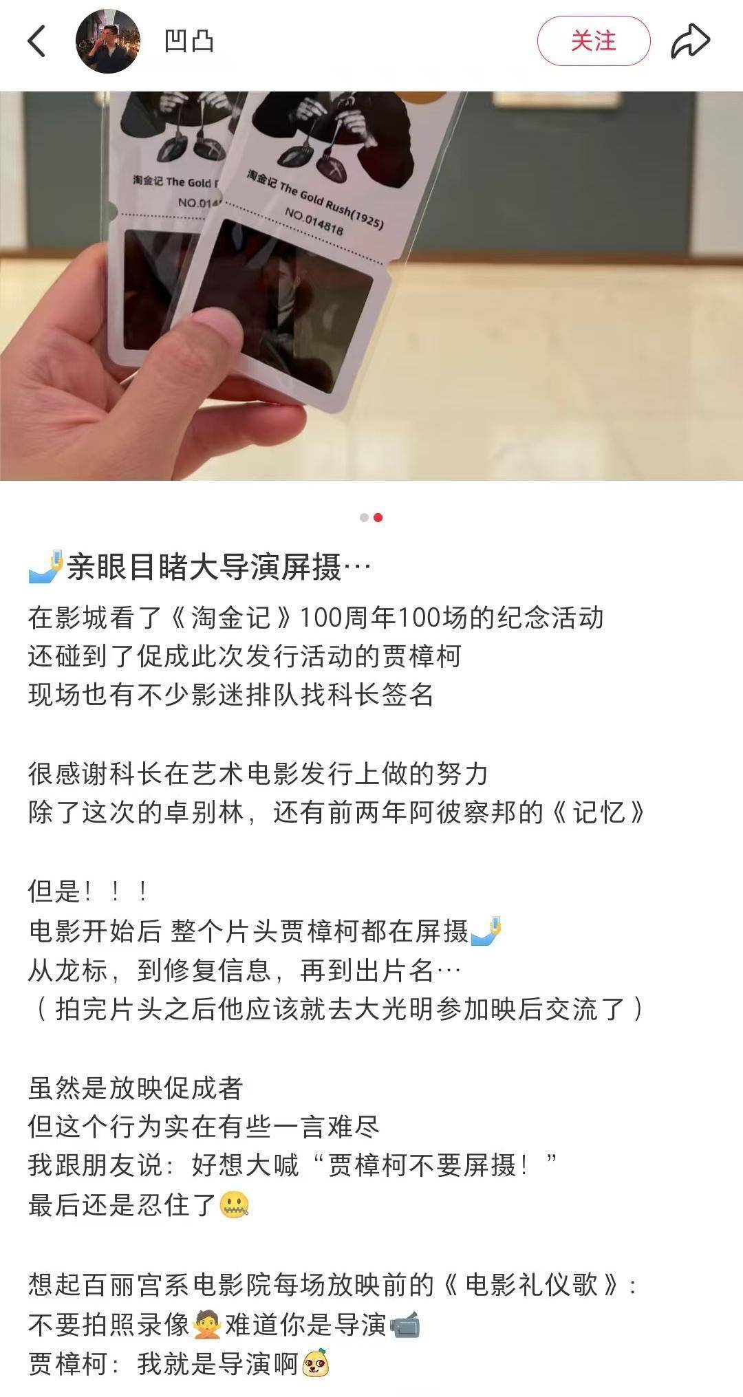 6月26日晚,昵称为“落魄”的网友在小红书发文称,在上海影城不雅看《淘金记》百年操心场时,目击贾樟柯在影片滥觞执续用手机拍摄银幕(包括龙标、开导信息及片名),并指出其座位位于9排24座。该帖赶紧激发烧议,“贾樟柯屏摄”成为小红书、微博等平台的热搜话题。 皇冠体育hg86a27日零点23分,贾樟柯通过微博发布戒备声明,表露当晚在上海影城杜比厅仅不雅看《淘金记》约15分钟,全程并未使用手机,更无屏摄活动。同期,他更晒出电影票,证实所坐的位置是9排20座,而非该网友所称的“9排24座”。随后,他暗示提前离场是为赶往大光明影院参预映后疏通,离场前仅说明了公映拷贝质料。南皆记者正经到,本来,在前一天,贾樟柯就已在微博发文预报过,他只可在上海影城不雅影半小时,之后就要赶往大光明电影院参预映后疏通。 伸开剩余66%